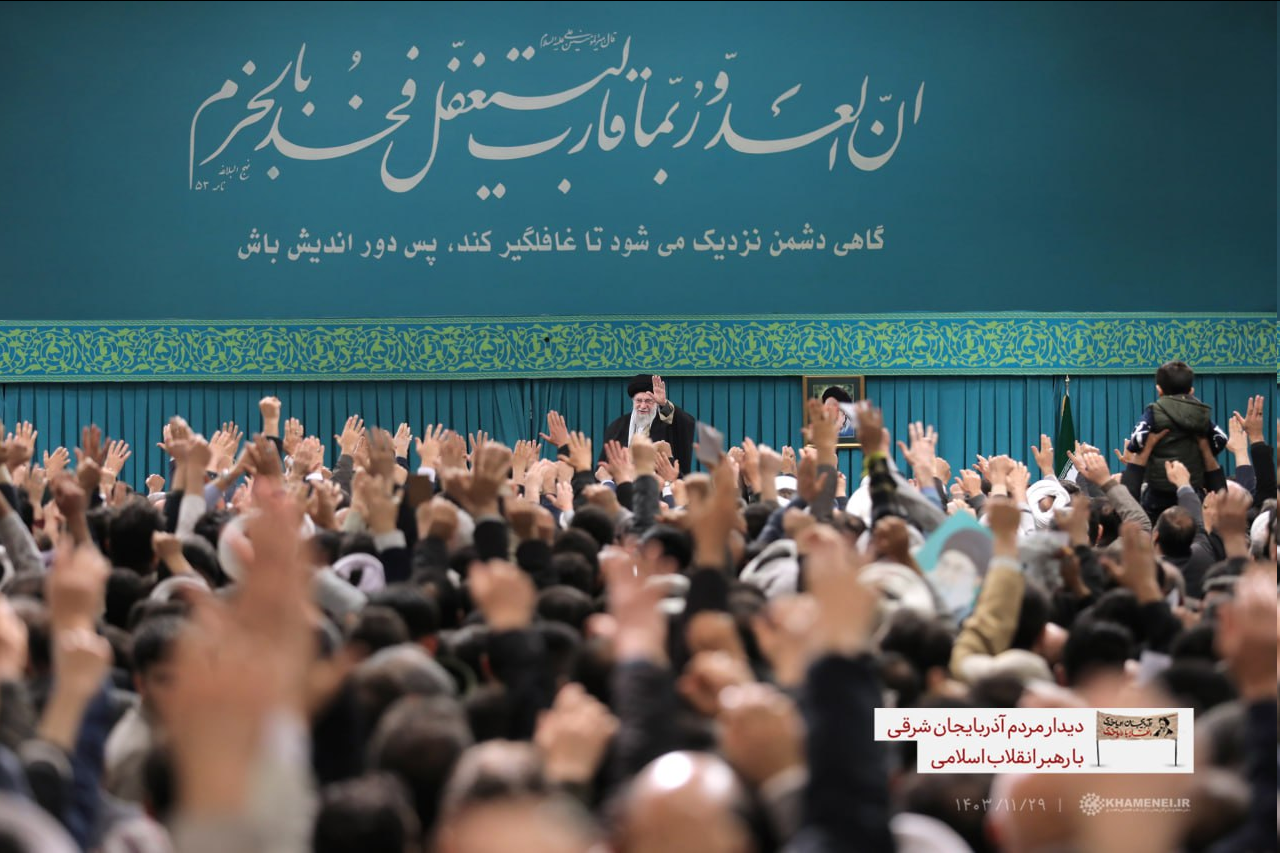 تایسیز نیوز – در سالروز قیام ۲۹ بهمن مردم تبریز، هزاران نفر از مردم استان آذربایجان شرقی با حضور در حسینیه امام خمینی، با رهبر انقلاب اسلامی دیدار کردند.