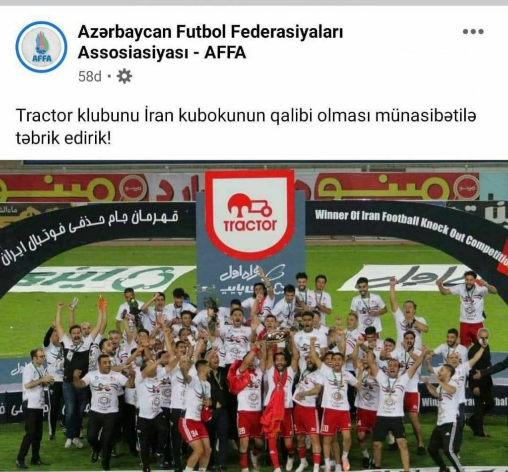 تبریک قهرمانی تراکتور در جام حذفی توسط فدراسیون فوتبال جمهوری آذربایجان