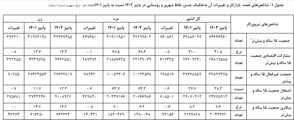 شکستن رکورد آمار شاغلان کشور در پاییز ۱۴۰۲