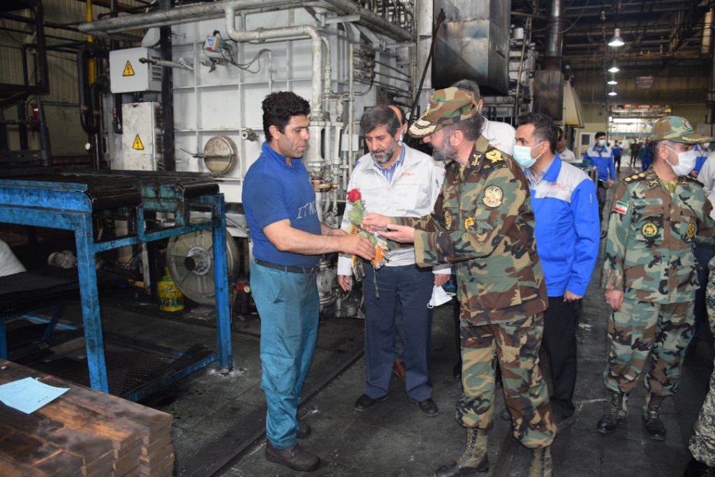 تقدير فرمانده لشکر ۲۱ حمزه آذربايجان با اهدا گل از کارگران تراکتورسازي