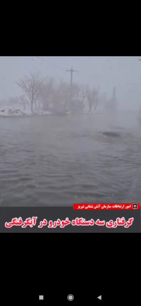 گرفتاری سه خودرو و پنج شهروند در آبگرفتگی خیابان دانش پیش از ظهر امروز در اثر آبگرفتگی معابر که بدنبال بارش های جوی رخ داد ، سه دستگاه خودرو سواری پیکان، ۲۰۶ و مزدا و پنج نفر سرنشین آنها، در #آبگرفتگی خیابان#دانش واقع در #میدان_معلم گرفتار شدند.آتش پاد زبردست مدیر عامل سازمان آتش نشانی تبریز […]