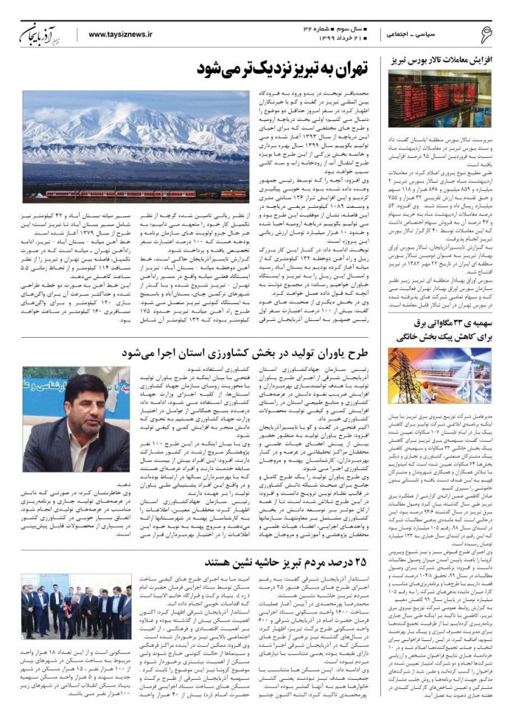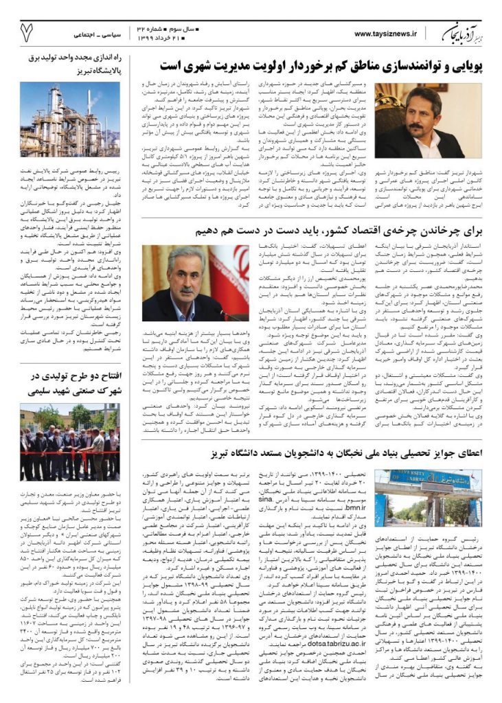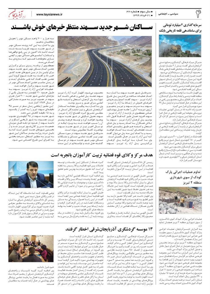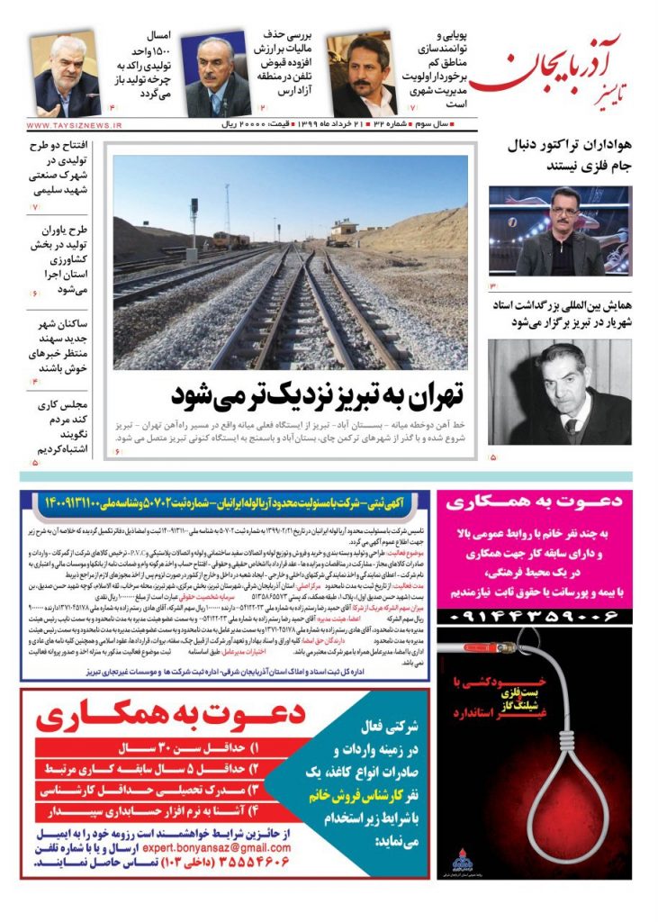 ۳۲ مین شماره دو هفته نامه تایسیز آذربایجان منتشر شد