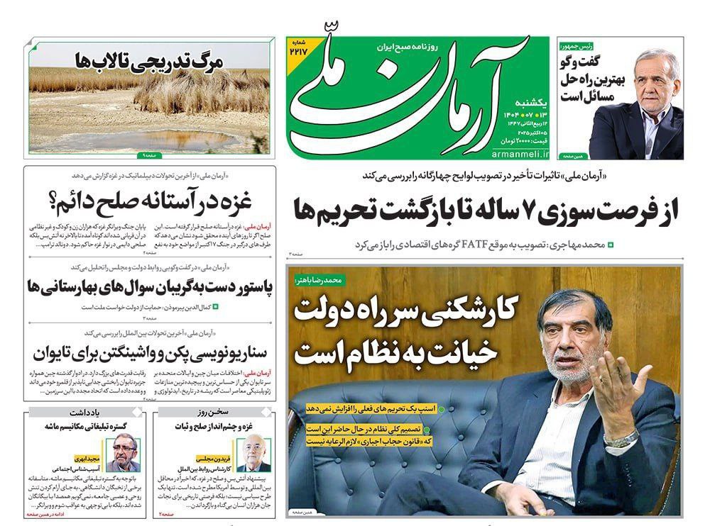 روزنامه های تاریخ 1404/07/13 - پایگاه خبری تحلیلی تایسیزنیوز | پایگاه خبری تحلیلی تایسیزنیوز