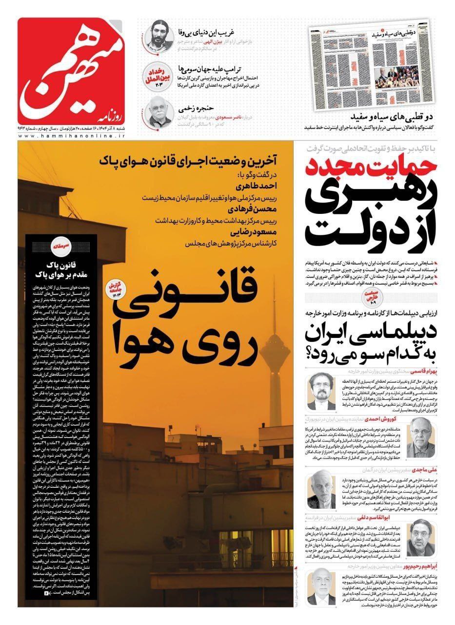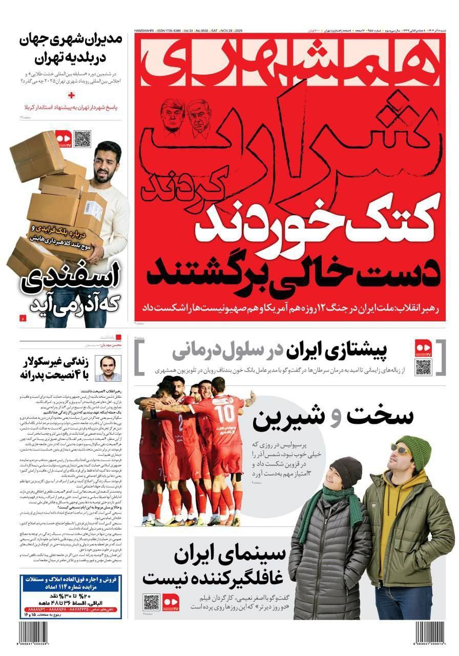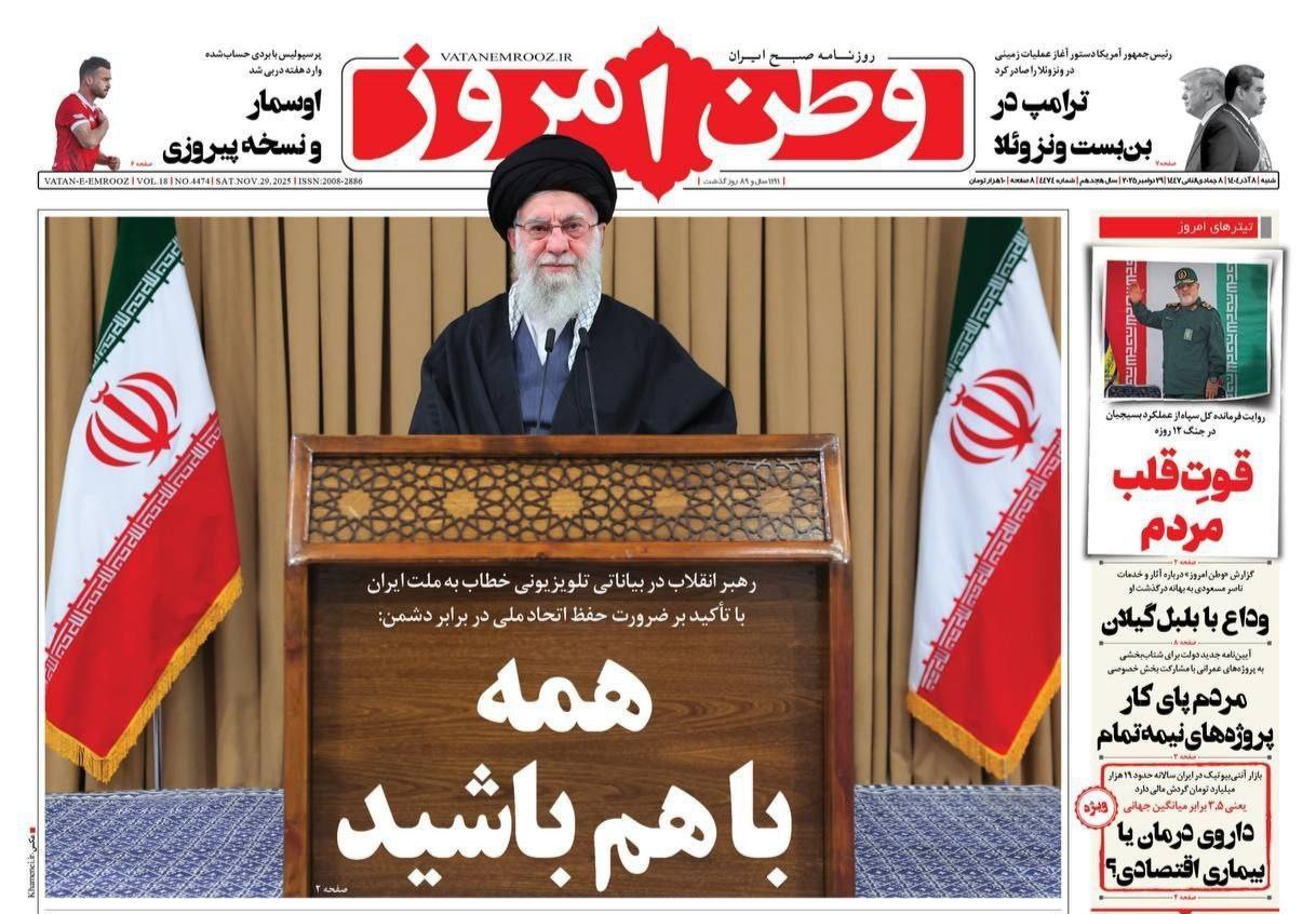 روزنامه های تاریخ 1404/09/08 - پایگاه خبری تحلیلی تایسیزنیوز | پایگاه خبری تحلیلی تایسیزنیوز