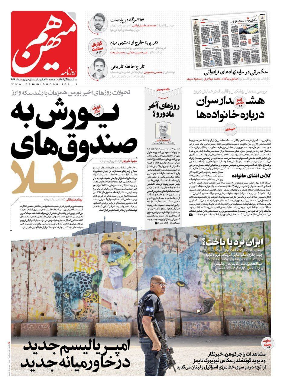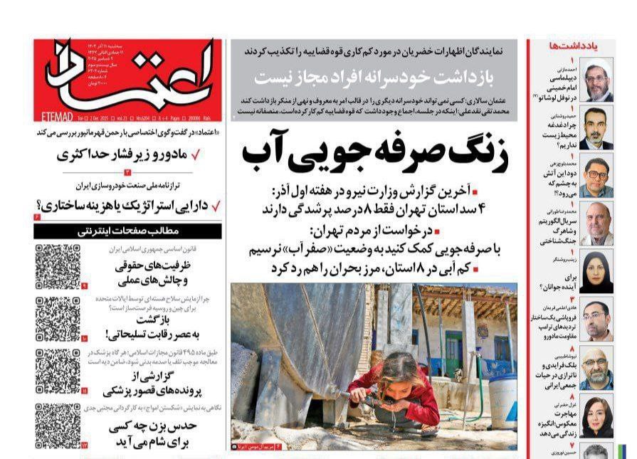 روزنامه های تاریخ  1404/09/11 - پایگاه خبری تحلیلی تایسیزنیوز | پایگاه خبری تحلیلی تایسیزنیوز