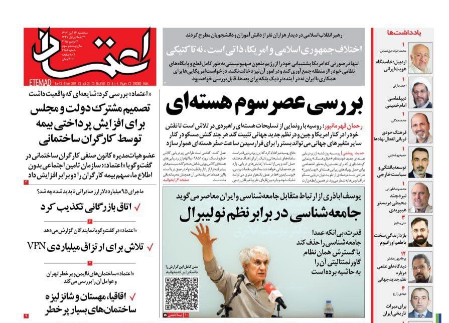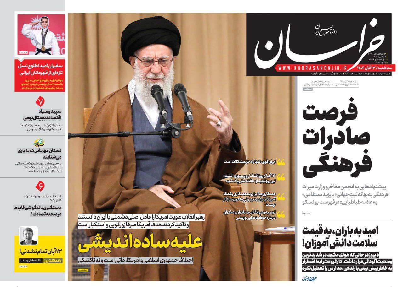 صفحات نخست برخی روزنامه های امروز سه شنبه ۱۳ آبان ۱۴۰۴ - پایگاه خبری تحلیلی تایسیزنیوز | پایگاه خبری تحلیلی تایسیزنیوز