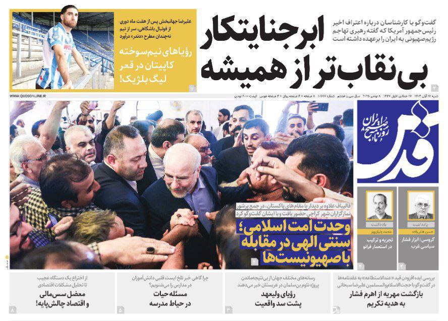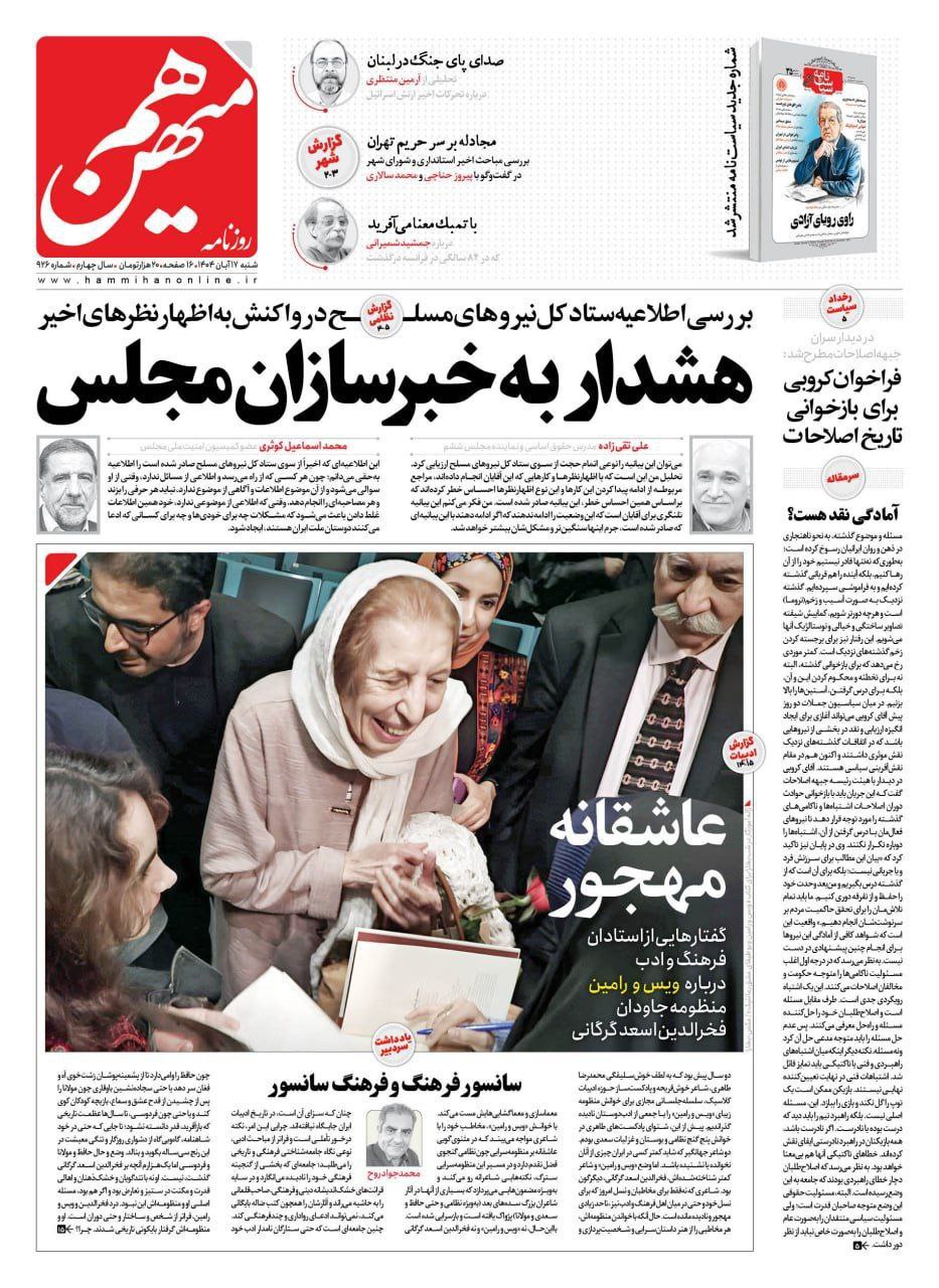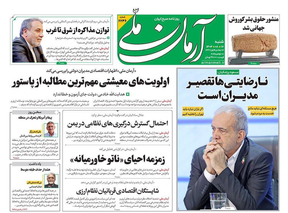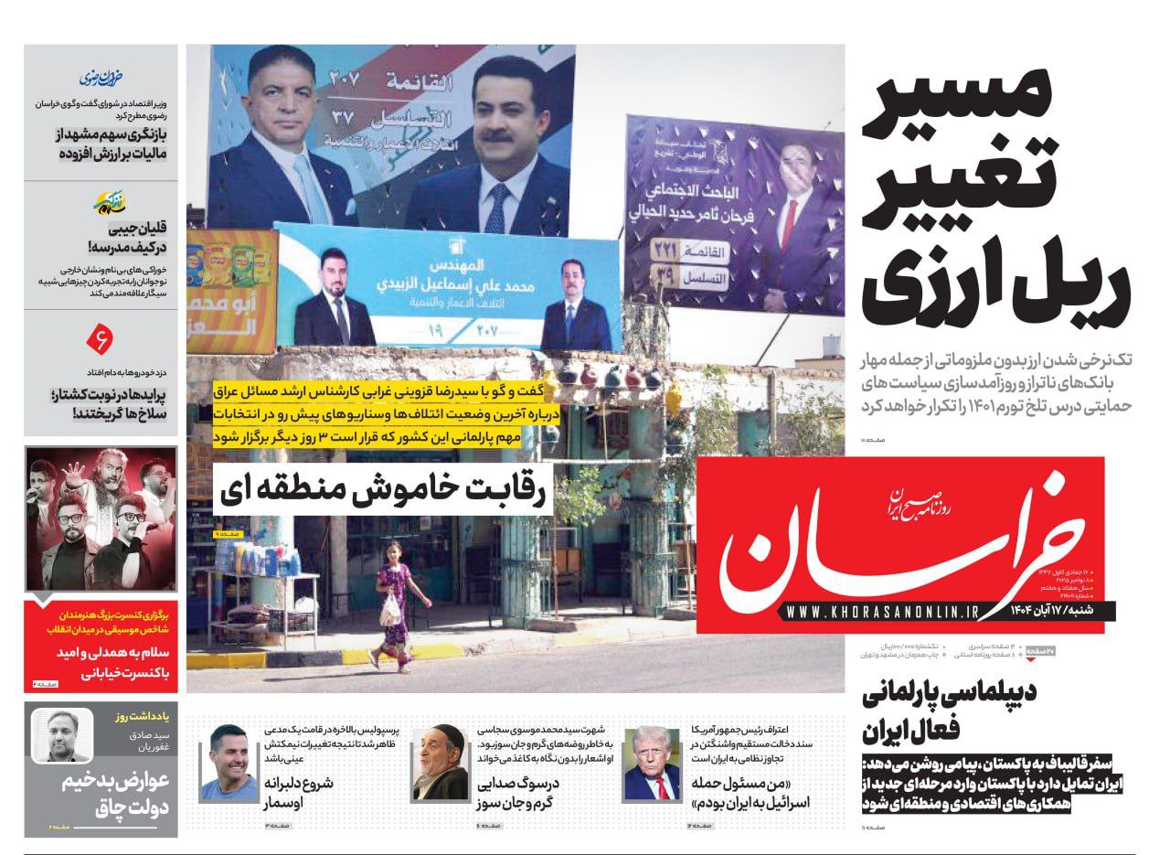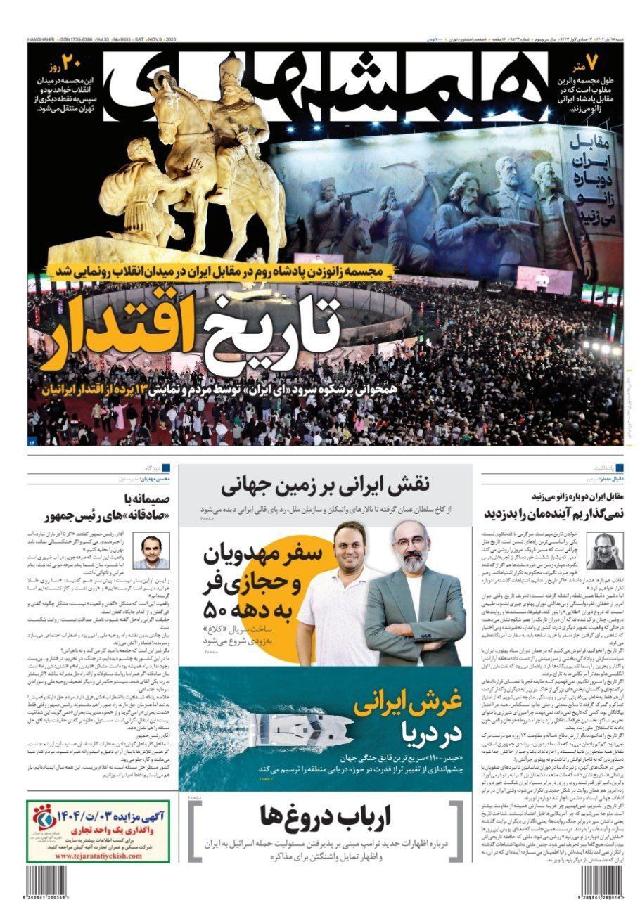 به گزارش تایسیز نیوز ،صفحات نخست برخی روزنامه های امروز شنبه ۱۷ آبان ۱۴۰۴