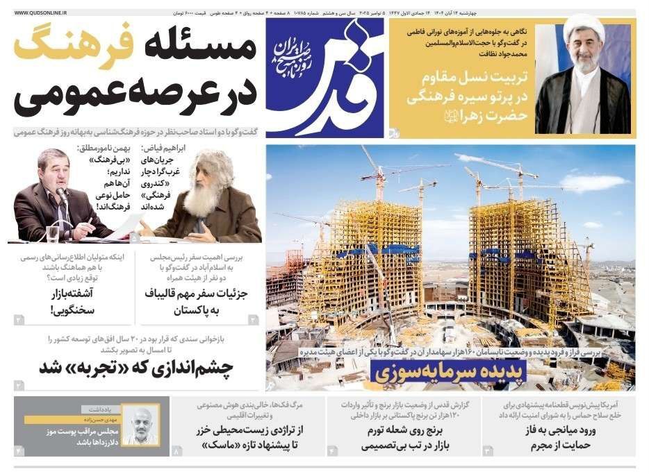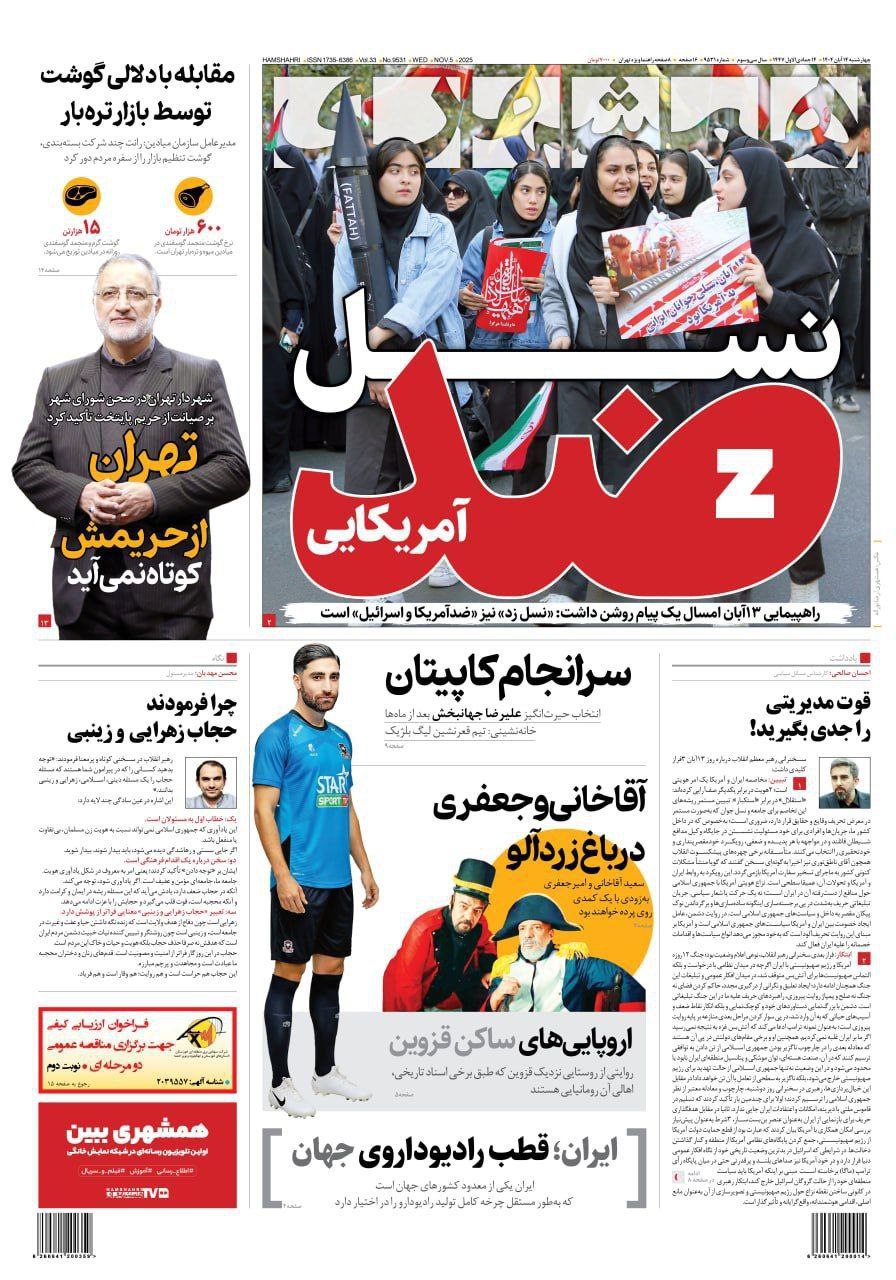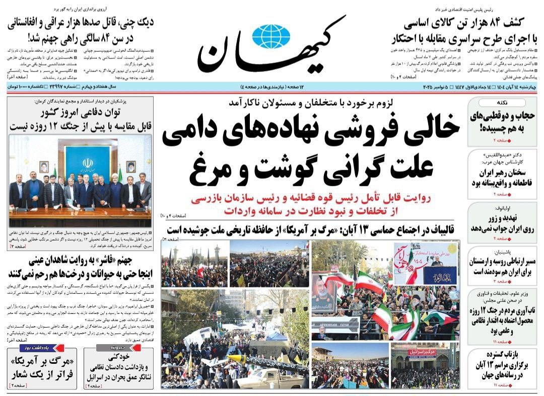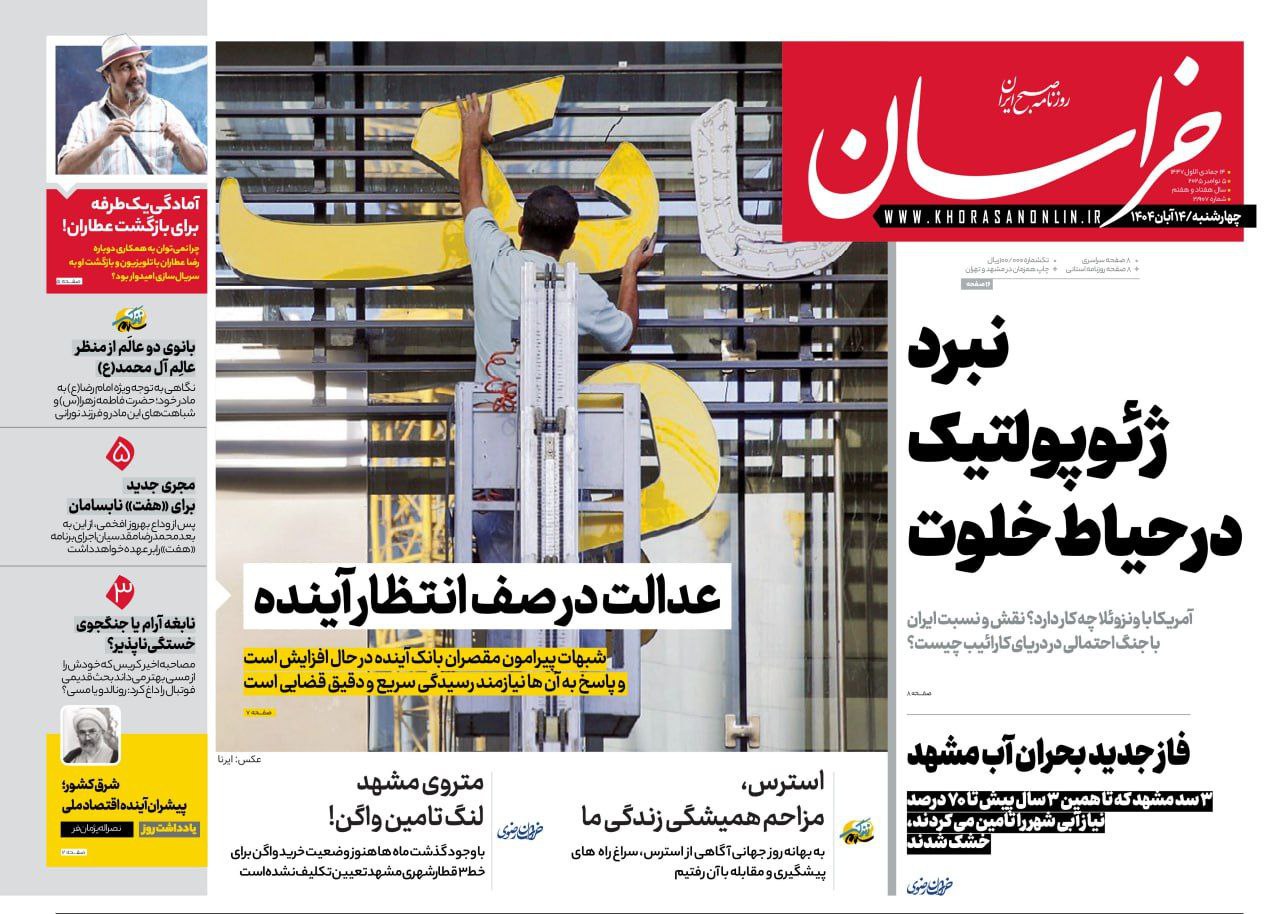 به گزارش تایسیز نیوز ،صفحات نخست برخی روزنامه های امروز چهارشنبه ۱۴ آبان ۱۴۰۴